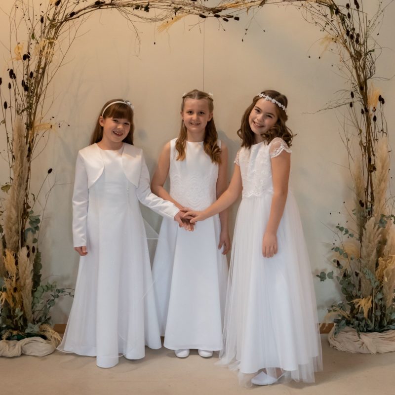 Die festlichen, weißen Kleider spiegeln die Besonderheit des Anlasses wider. Die Kommunionkleider sollen aber nicht nur die Festlichkeit ausdrücken, sondern gleichzeitig auch bequem, kindgerecht und etwas ganz Besonderes sein.
