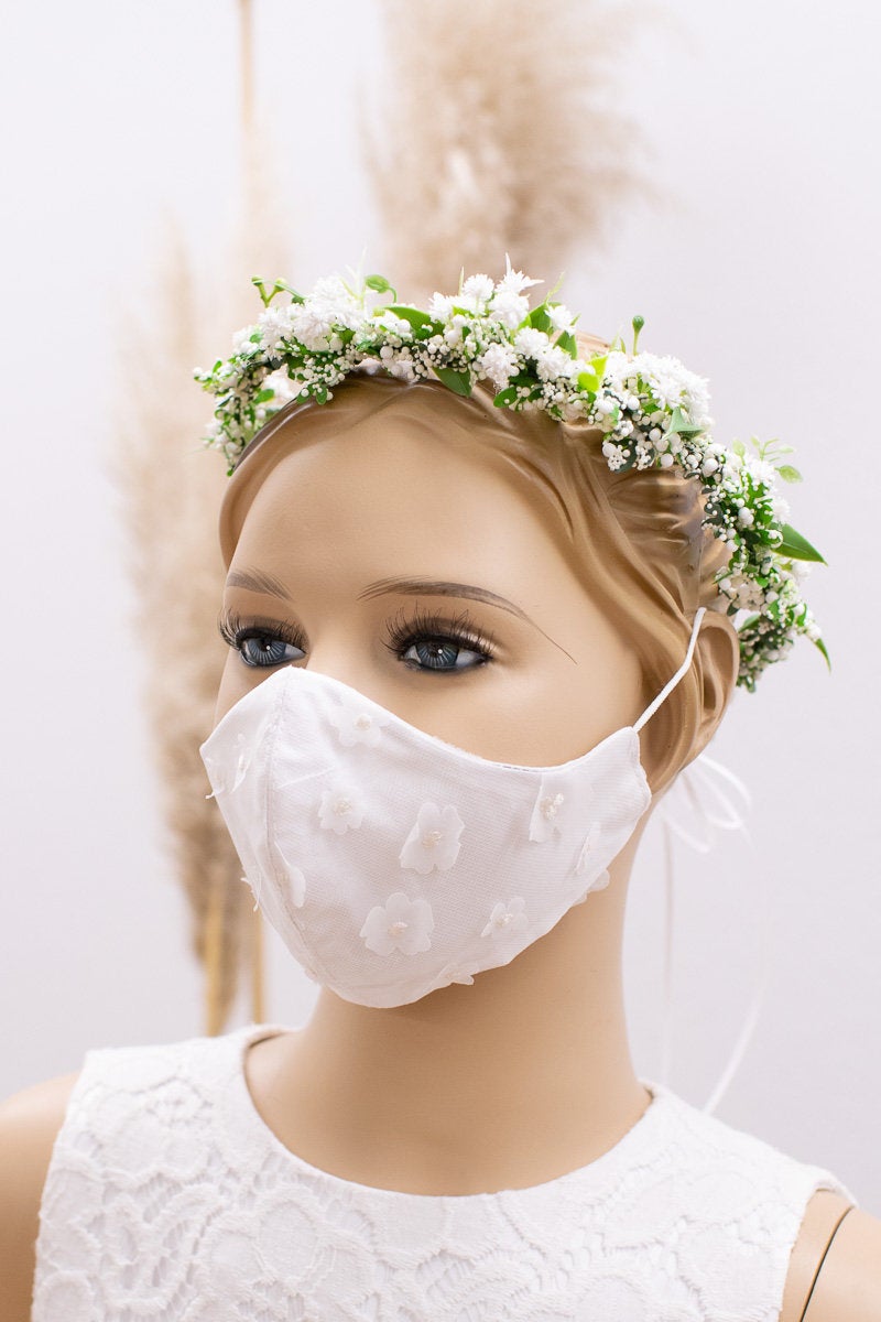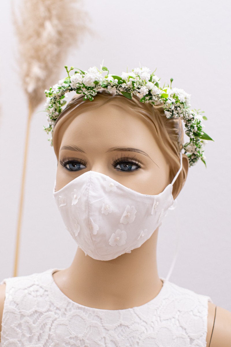 Behelfs-Mund-Nasen Schutz aus Spitze in Weiß.