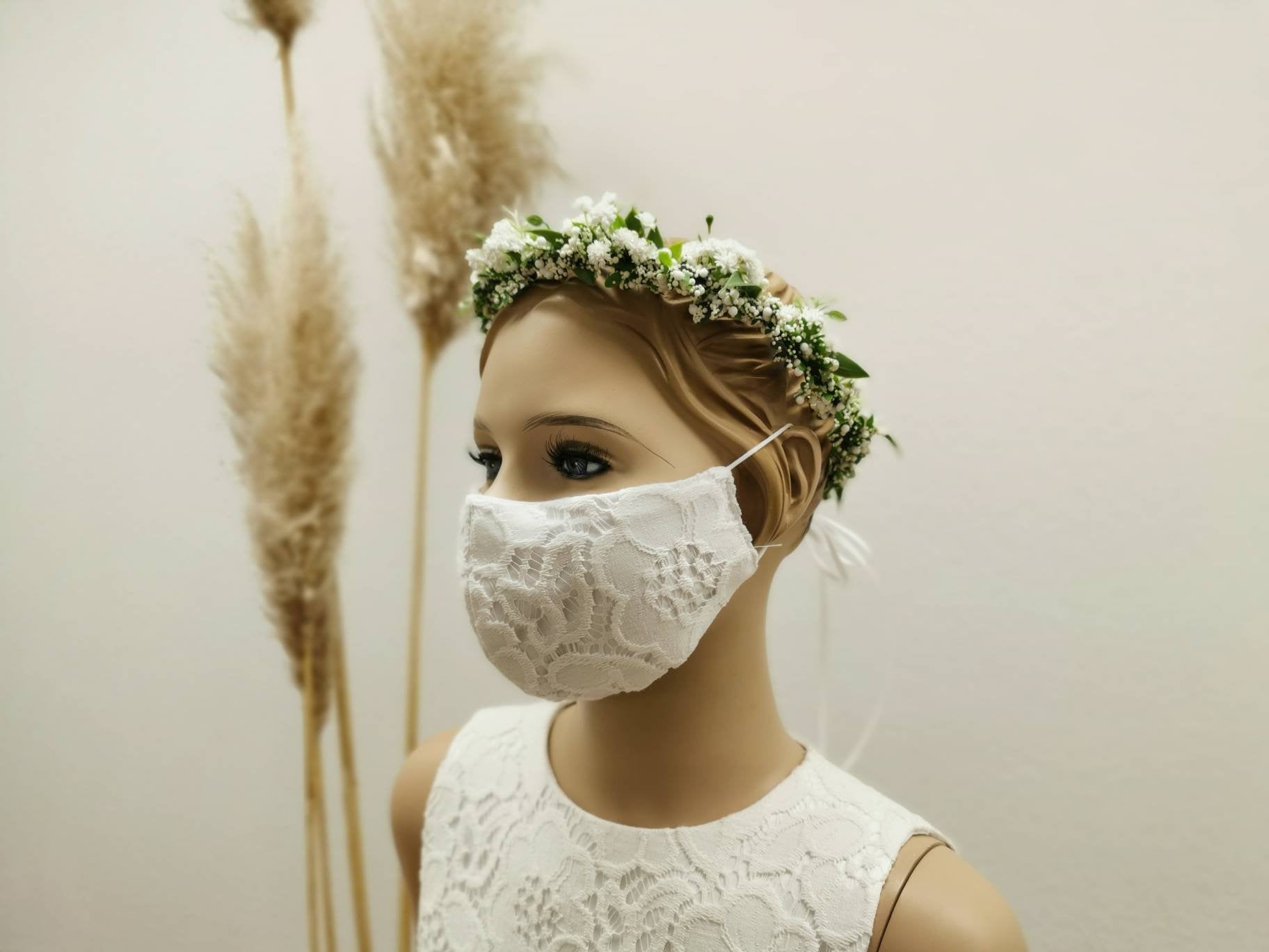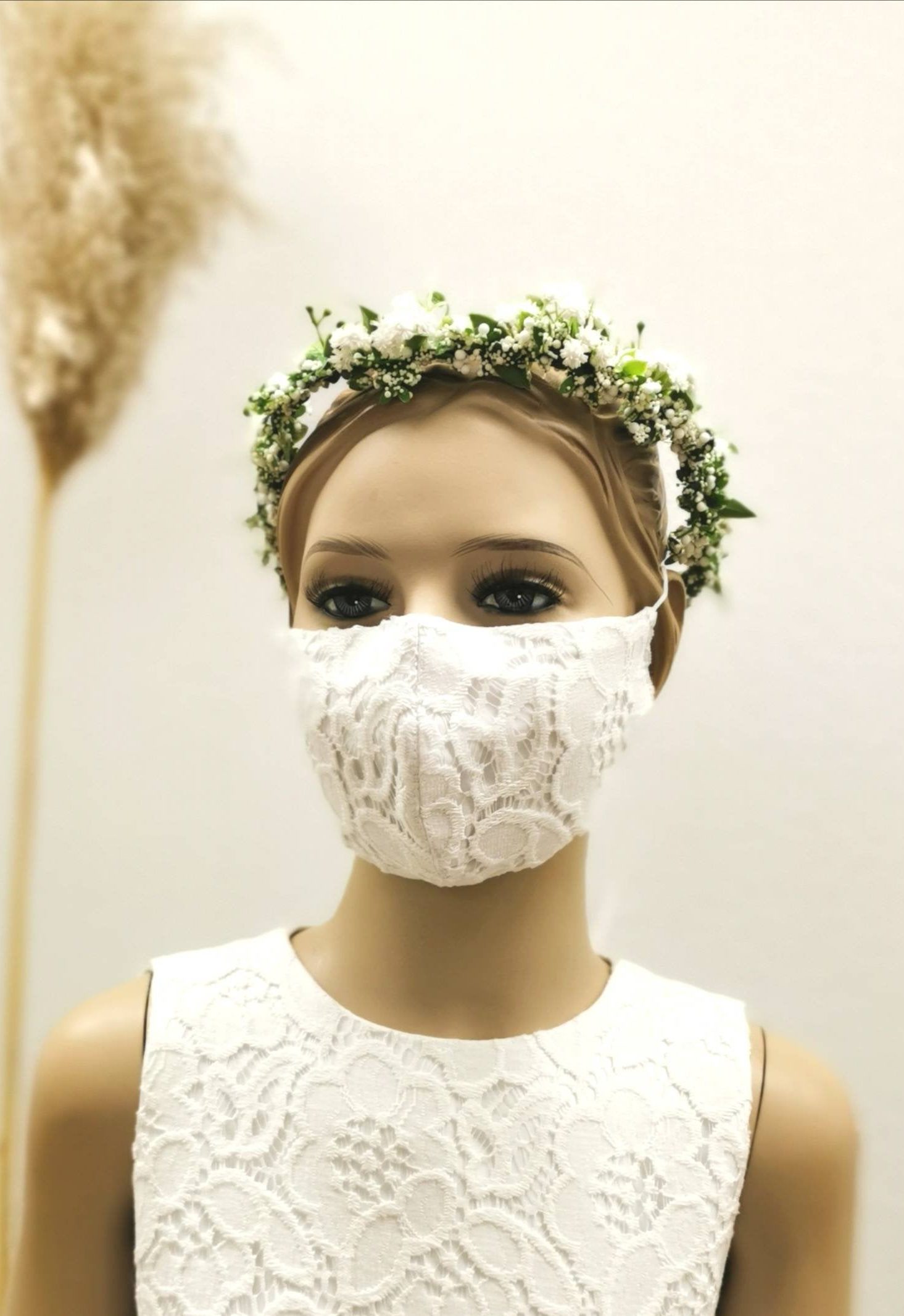 Behelfs-Mund-Nasen Schutz aus Spitze in Weiß.